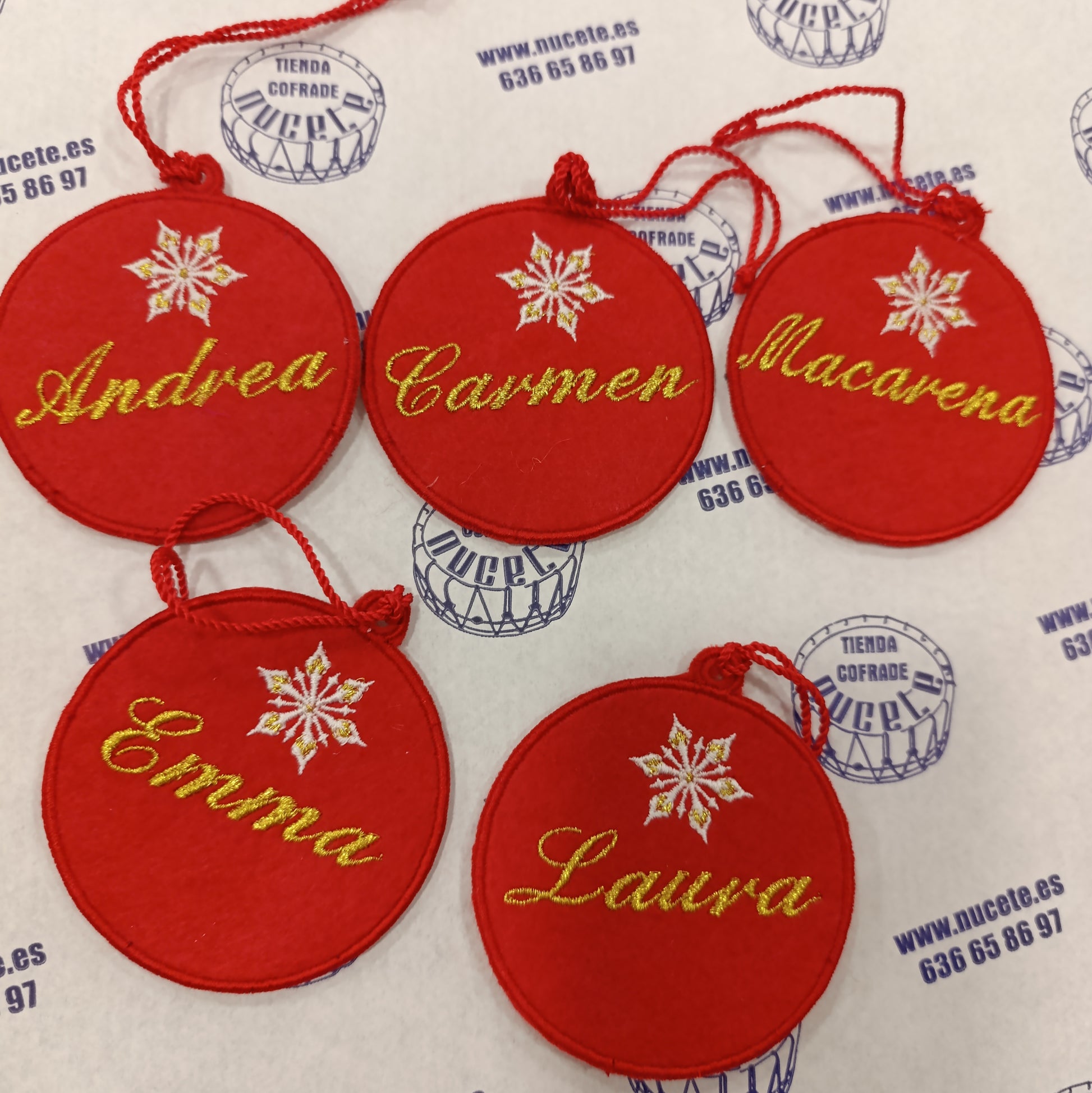 Bola de navidad de fieltro bordada.