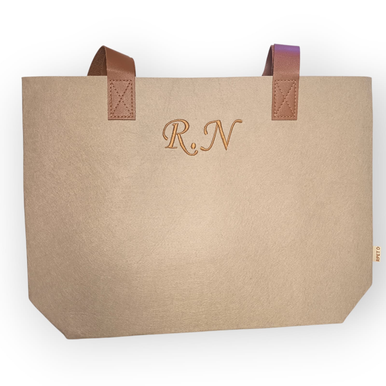 Bolsa de fieltro reciclado con asas largas personalizable .